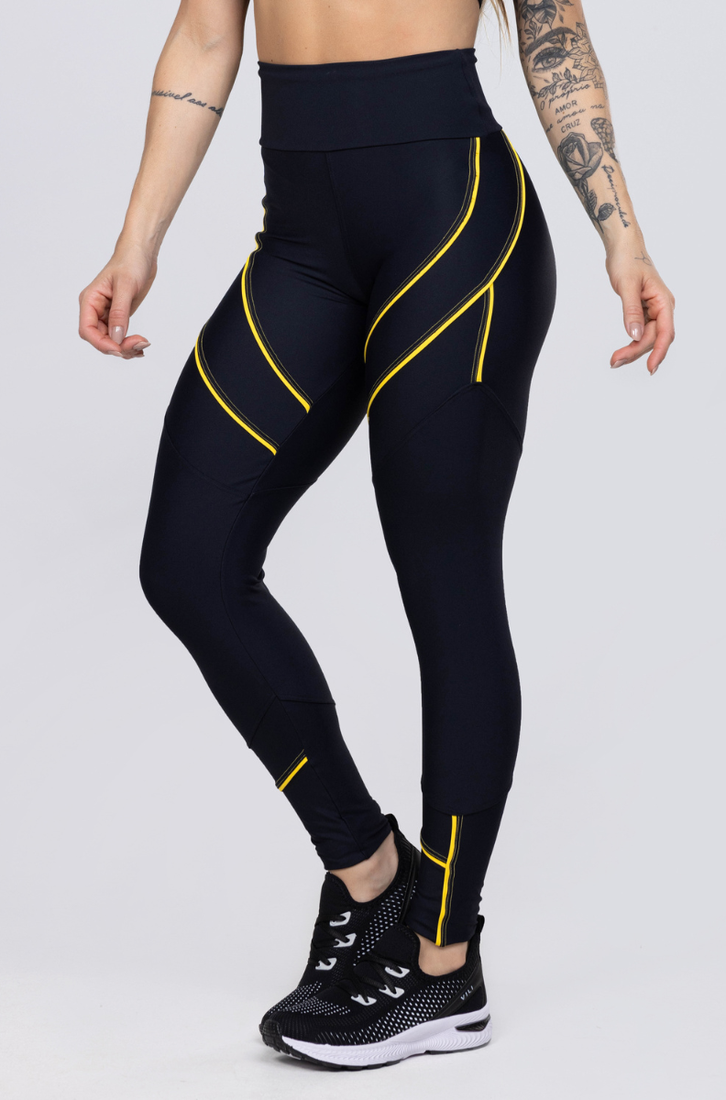 Estilo Ousado e Clássico: Com recortes e detalhes em vivo, esta legging combina ousadia e elegância, sendo a escolha perfeita para quem deseja um visual diferenciado e clássico ao mesmo tempo.