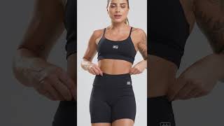 As alças finas do top garantem um visual moderno e elegante, com suporte confortável e sem marcar. O short de cintura alta oferece ajuste perfeito e ajuda a segurar o abdômen, com tecido opaco (zero transparência) e costuras reforçadas para mais durabilidade e resistência.