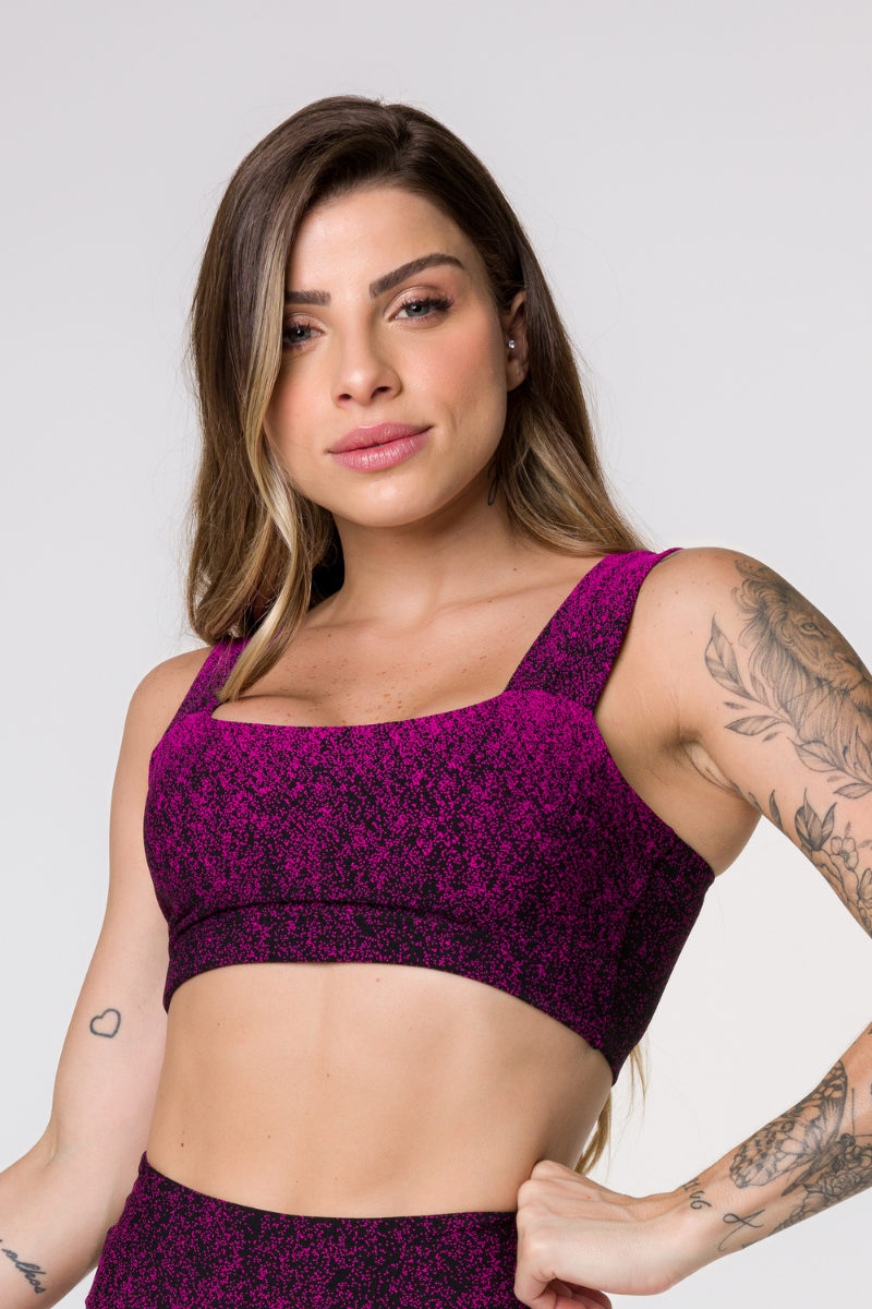 O top cropped fitness possui alças retangulares que garantem um ajuste seguro e confortável durante seus treinos. O design cropped oferece liberdade de movimento, ideal para atividades físicas intensas.