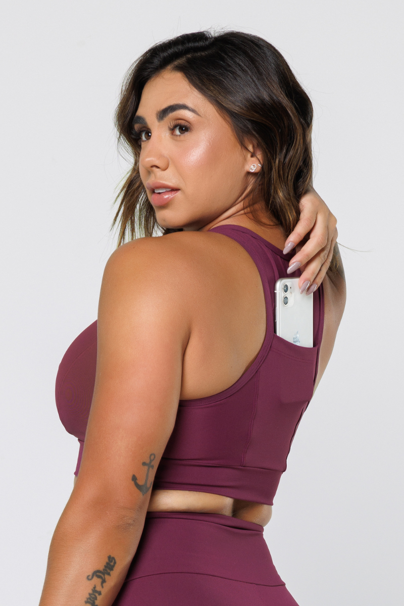 O diferencial deste top é o bolso traseiro que acomoda qualquer celular. Agora, você pode levar seu cartão, sua música e se concentrar nos treinos ou nas corridas sem deixar nada para trás!