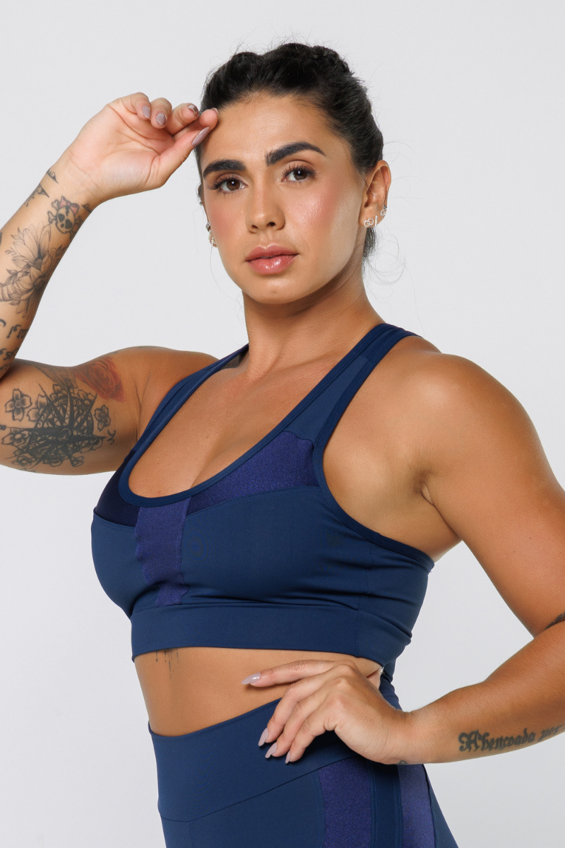 Com recortes estratégicos na frente e tiras nas costas, este top fitness combina estilo e elegância, proporcionando um visual contemporâneo para seus treinos.